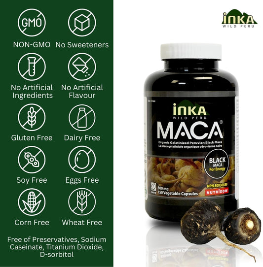 InkaMaca Organic Black Maca 800mg, Gelatinized (150 Capsules)